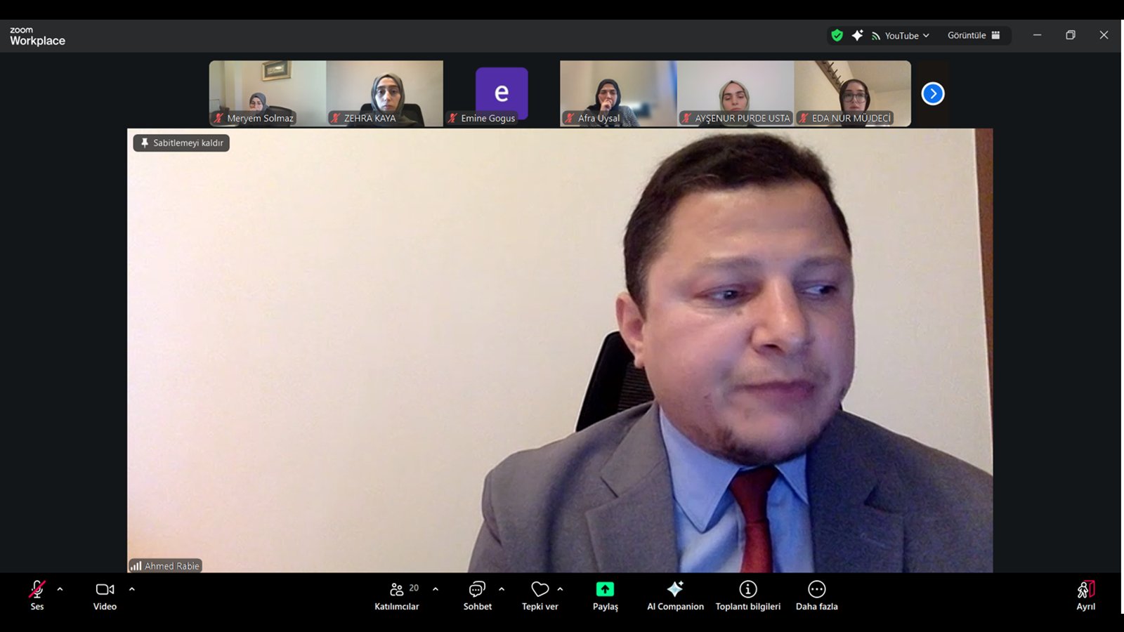 Dubai Polis Akademisi ve El-Ezher Üniversitesi'nden Dr. Ahmed Rabie'nin konuşmacı olarak katıldığı ve Dr. Öğr. Üyesi Meryem Solmaz’ın moderatörlüğünü üstlendiği konferansta, Mısır hukuk sistemindeki geleneksel yapının modern arabuluculuk mekanizmalarıyla entegrasyonu incelendi.